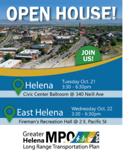 The Greater Helena Metropolitan Planning Organization (MPO) is a regional partnership that coordinates transportation planning for Helena and surrounding areas, including Helena, East Helena, and Lewis & Clark County. The MPO is tasked with developing a Long Range Transportation Plan (LRTP) to guide investments in roads, biking, walking, transit, and safety over the next 20 years. As we begin the planning process, we want to hear from you!